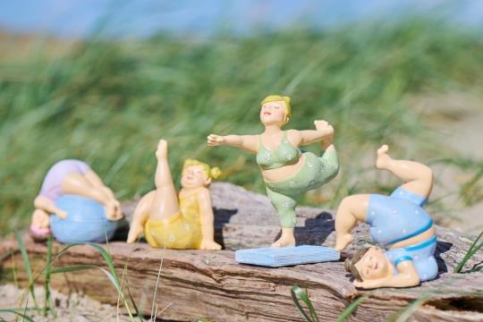 Humor møder balance i disse livlige yogadamer. Hver figur stråler med sin helt egen personlighed, og deres finurlige positurer og farverige udtryk gør dem til charmerende blikfang.