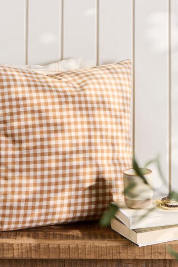 Ib Laursen Pudebetræk rustikbrun m/naturfarvede tern