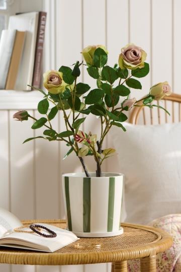 En romantisk og naturtro rose, der står i fuldt flor – året rundt. De delikate blomster og grønne blade giver et friskt pust og et strejf af haveidyl til enhver krog af hjemmet. Smuk alene eller som del af en blomstrende opstilling – helt uden vanding og vedligeholdelse.